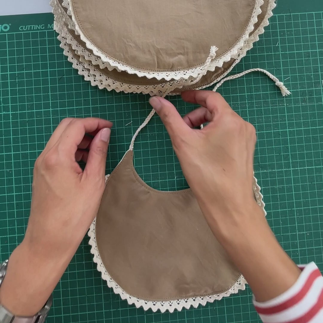- Desata los cordones: Suelta completamente los cordones del babero antes de colocarlo
