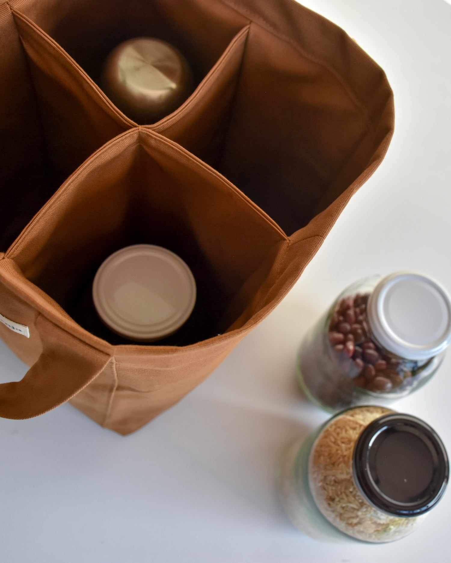 Esta bolsa fue diseñada pensando en tus necesidades reales: proteger tus frascos, facilitar tus compras a granel y contribuir a un planeta más sostenible.