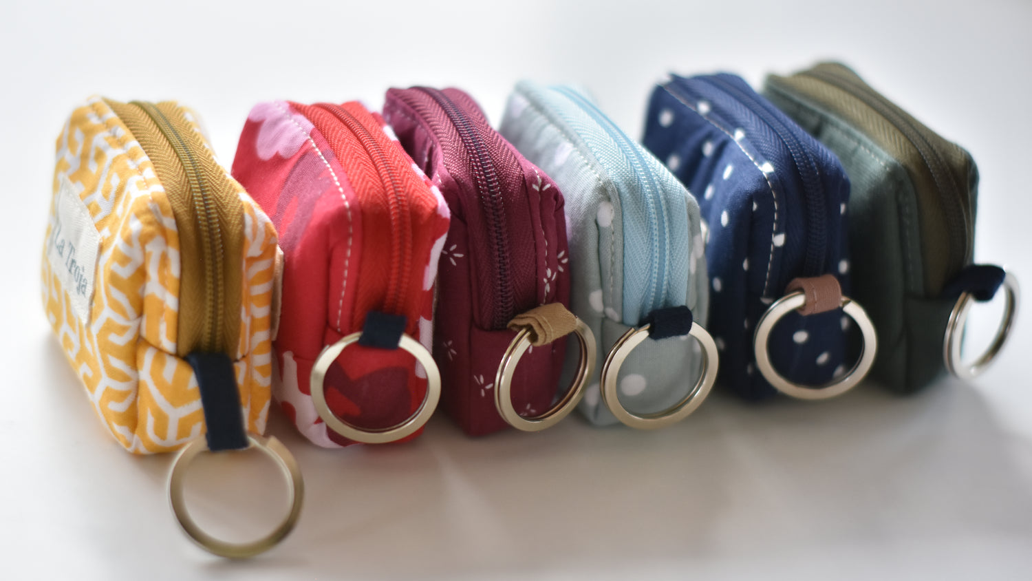 Los diseños van variando según las telas disponibles en el taller, ya que estos monederos los hago a partir de los retazos sobrantes. Si quieres, puedes escribirme y con gusto te muestro las opciones disponibles en este momento.